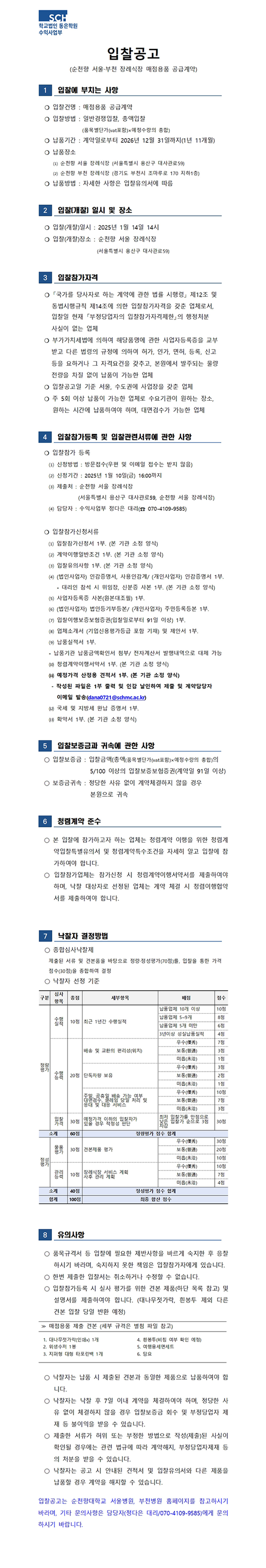 다음 순천향 서울 부천 장례식장 식자재(야채 및 공산품) 공급계약 선정 2025.01.03