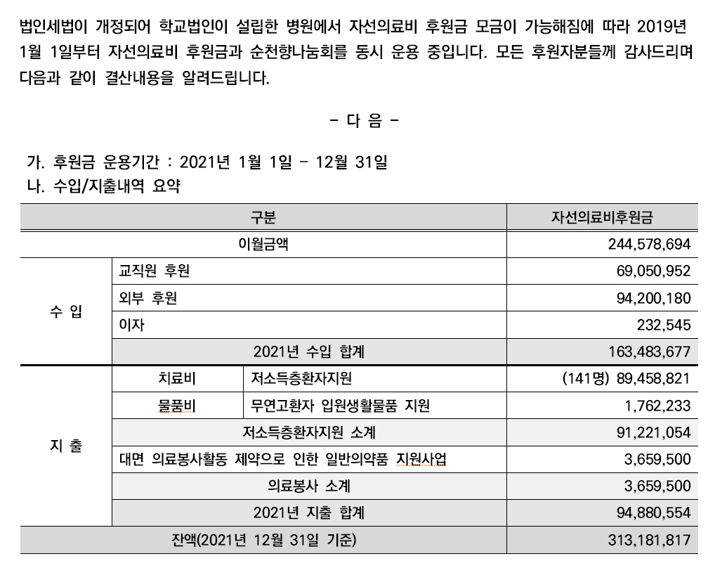 이전 발전기금 등 감사의 기부의 잇따라 2022.01.24