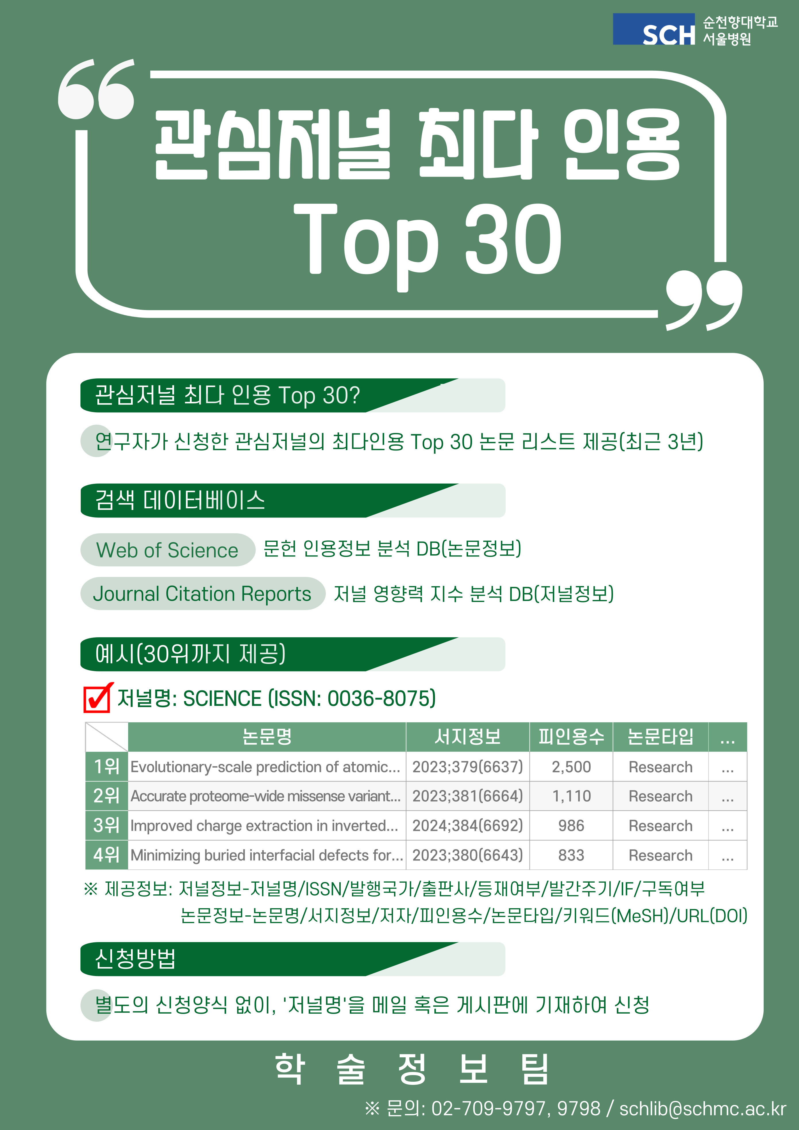 학술정보팀에서 '관심저널 최다 인용 Top 30' 서비스를 시작합니다!