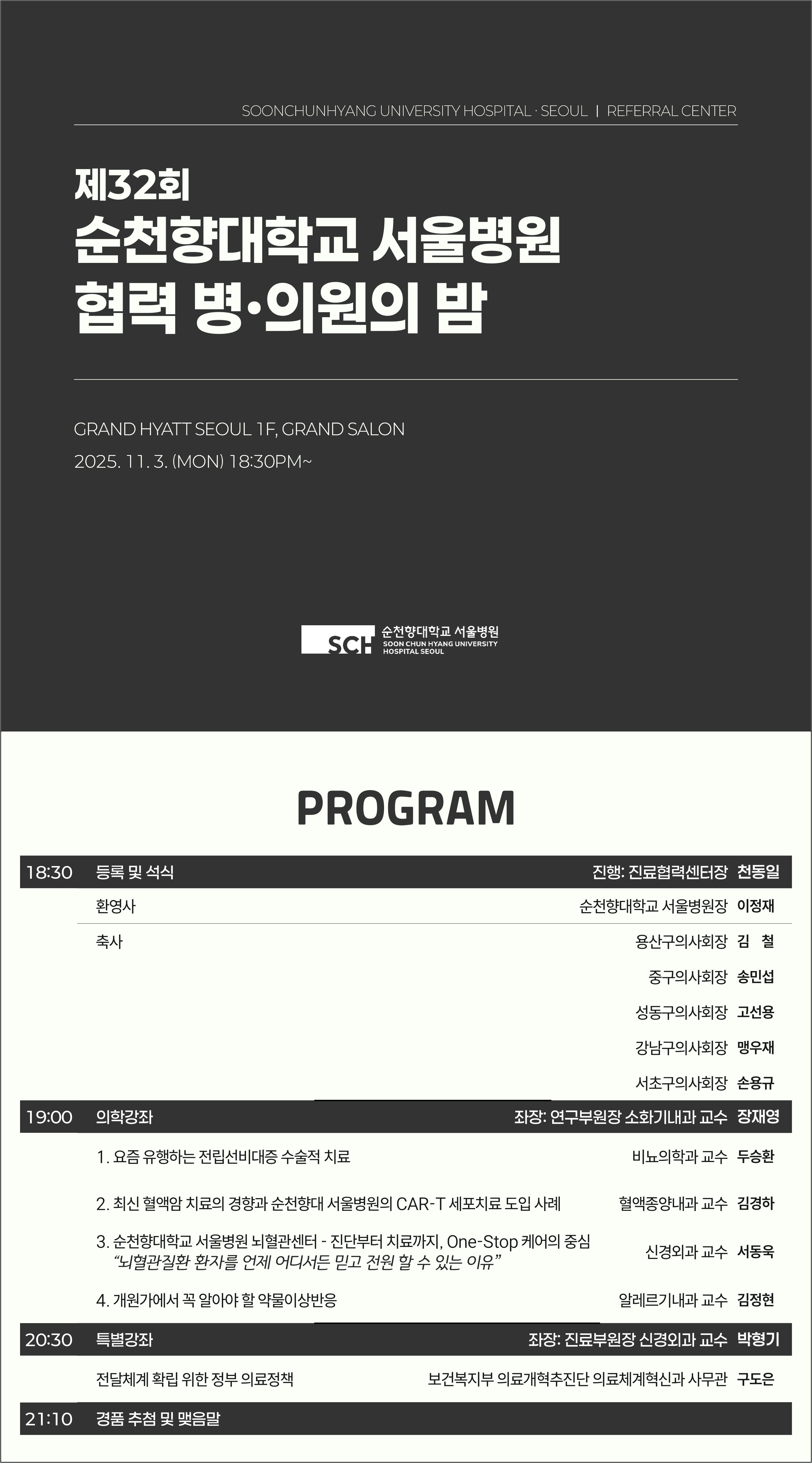 제32회 순천향대학교 서울병원 협력 병·의원의 밤에 원장님을 초대합니다.