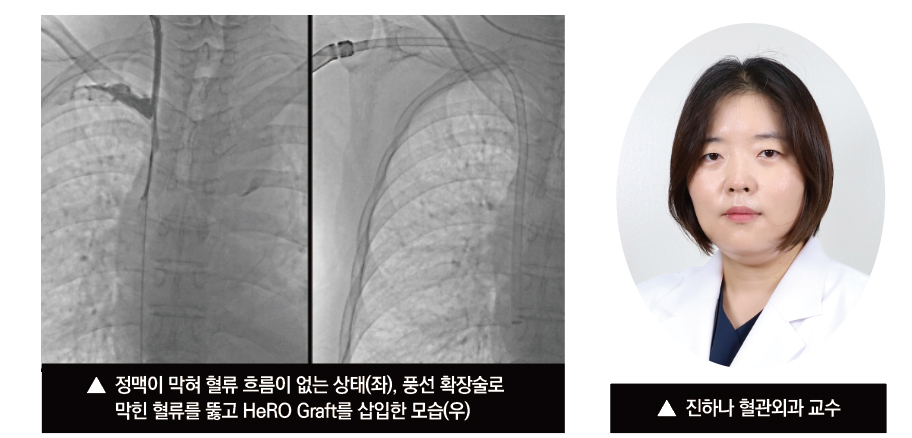 진하나 교수는 “HeRO Graft는 양쪽 팔의 중심정맥이 모두 막힌 장기 투석 환자에게 팔로 투석할 수 있게 해주는 중요한 치료 대안”이라며 “시술 후 부종이 사라지고 투석 효율이 향상돼 환자의 삶의 질이 크게 개선됐다”고 말했다.