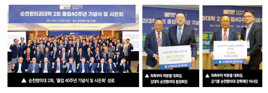 이번 행사는 순천향의대 2회 졸업생들이 은사와 함께 모여 지난 40년의 발자취를 돌아보고, 모교에 대한 감사의 마음을 전하는 뜻깊은 자리로 마련됐다.