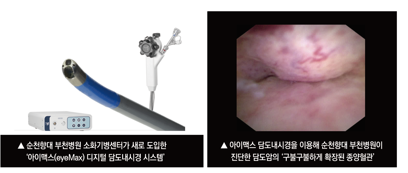 순천향대학교 부천병원(병원장 문종호)이 국내 대학병원 최초로 고해상도 일회용 디지털 담도 전용 내시경인 ‘아이맥스(eyeMax) 디지털 담도내시경 시스템’을 도입했다고 1일 밝혔다.