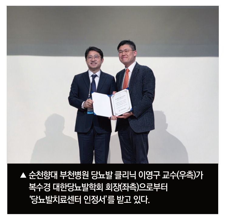 순천향대 부천병원 당뇨발 클리닉 이영구 교수(정형외과)는 “당뇨발은 조기 진단과 체계적인 치료가 무엇보다 중요한 질환”이라며 “앞으로도 연구와 다학제 진료를 통해 당뇨발 환자 삶의 질 향상에 기여하겠다”고 말했다.