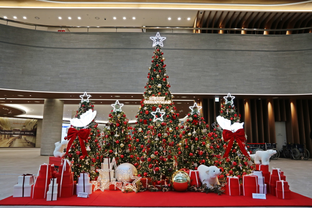 크리스마스트리 앞에는 수많은 선물꾸러미와 아기 북극곰 등이 장식된 포토존이 설치돼 병원을 찾은 환자 및 보호자들에게 큰 호응을 받고 있다.