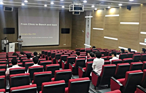 초청 연자는 순천향대학교 의생명연구원(SIMS) 류성호 교수. 생물정보학, 유전체학, 후생유전학 전문가인 류교수는 연구원에서 전이암, 암줄기세포, 퇴행성질환의 연구를 담당하고 있다.