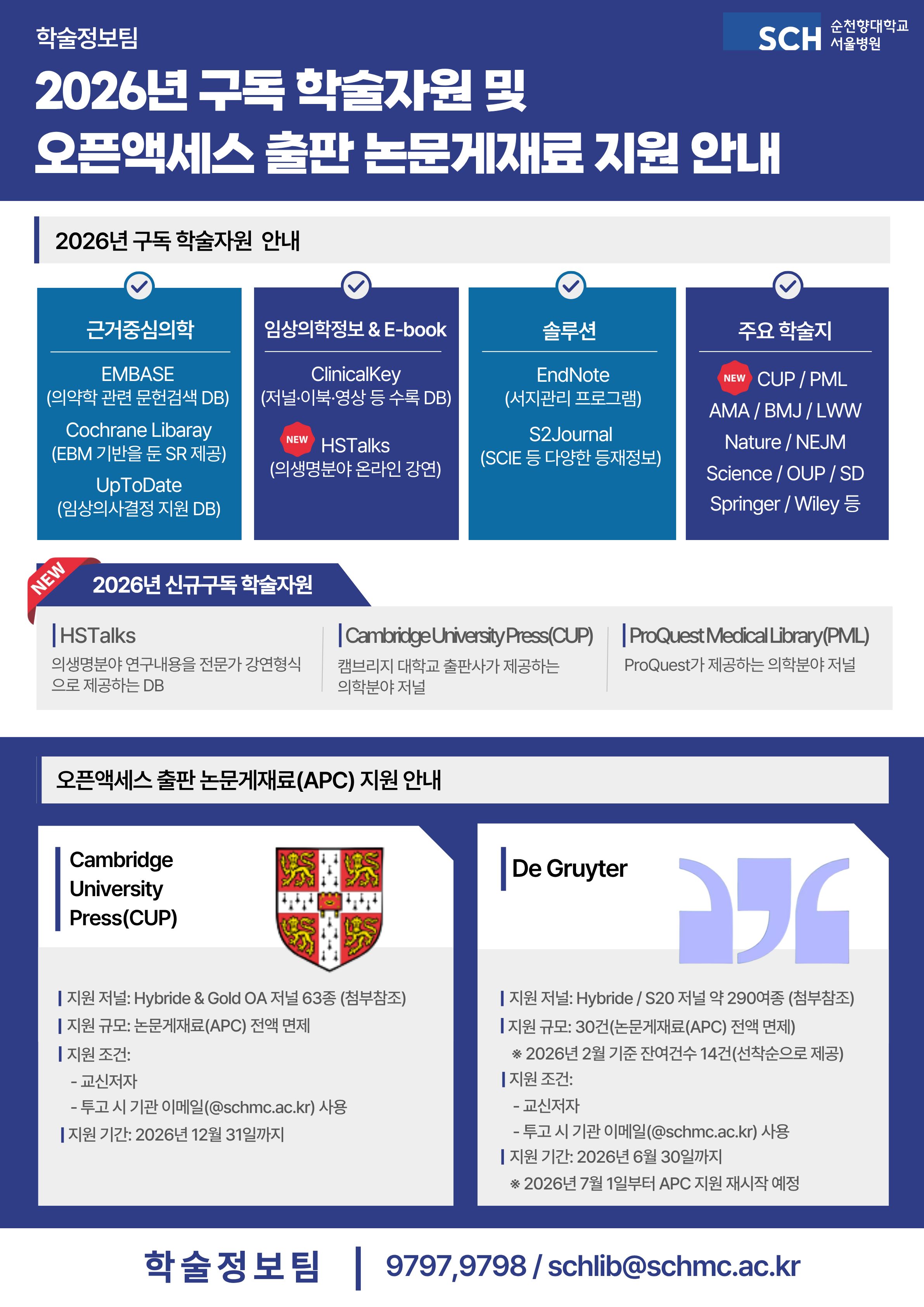 2026년 구독 학술자원 및 OA 출판 논문게재료 지원 안내